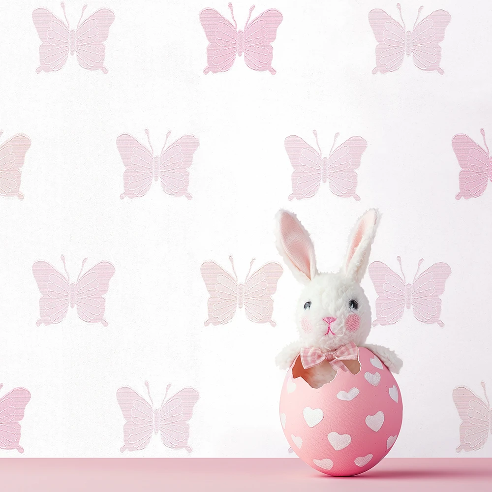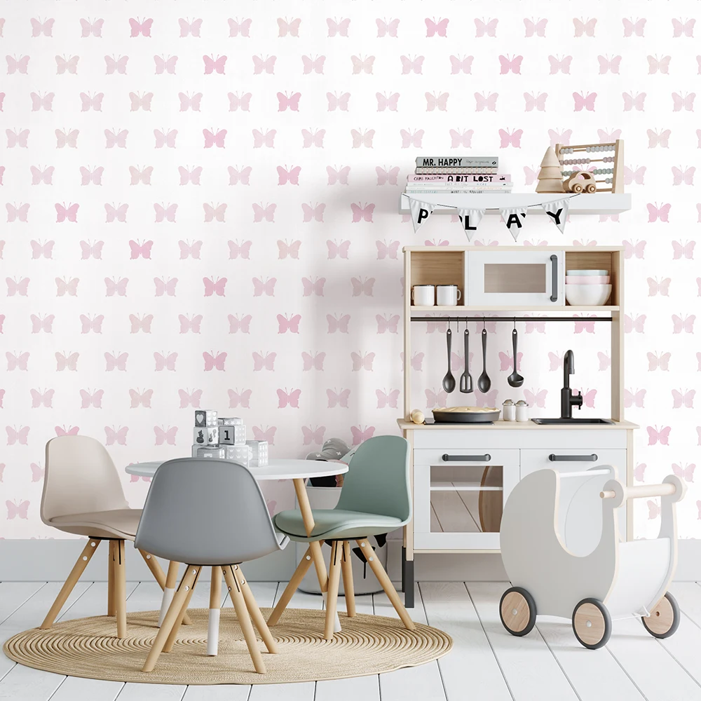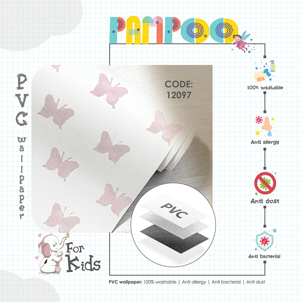کاغذ دیواری کودک طرح پروانهای | صورتی کد 12097