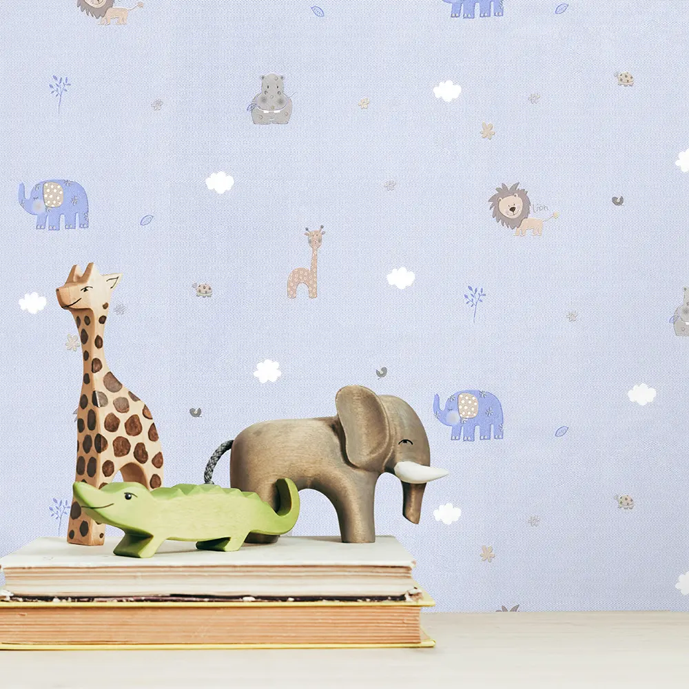 کاغذ دیواری کودک طرح دنیای حیوانات | آبی کد 12071